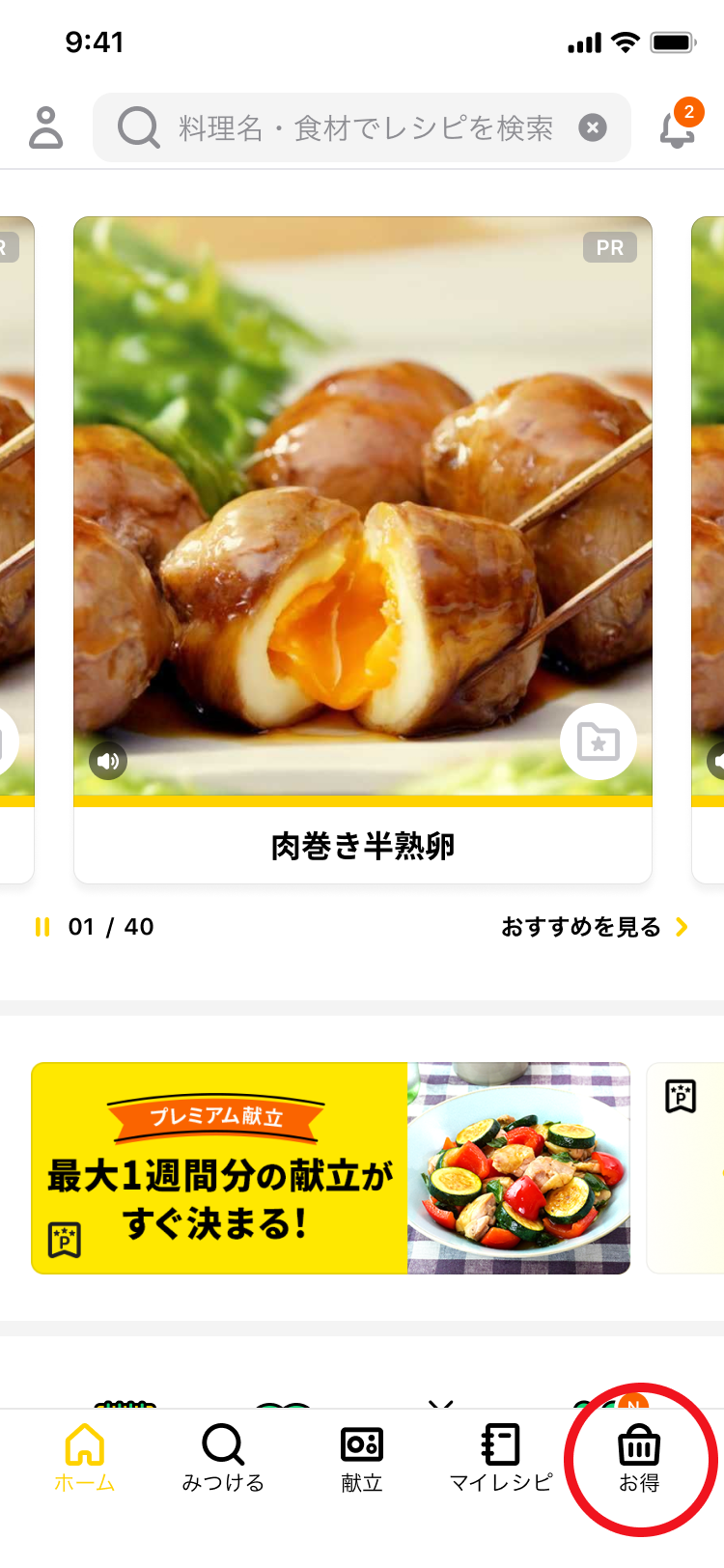 - アプリ右下の[お得] をタップ