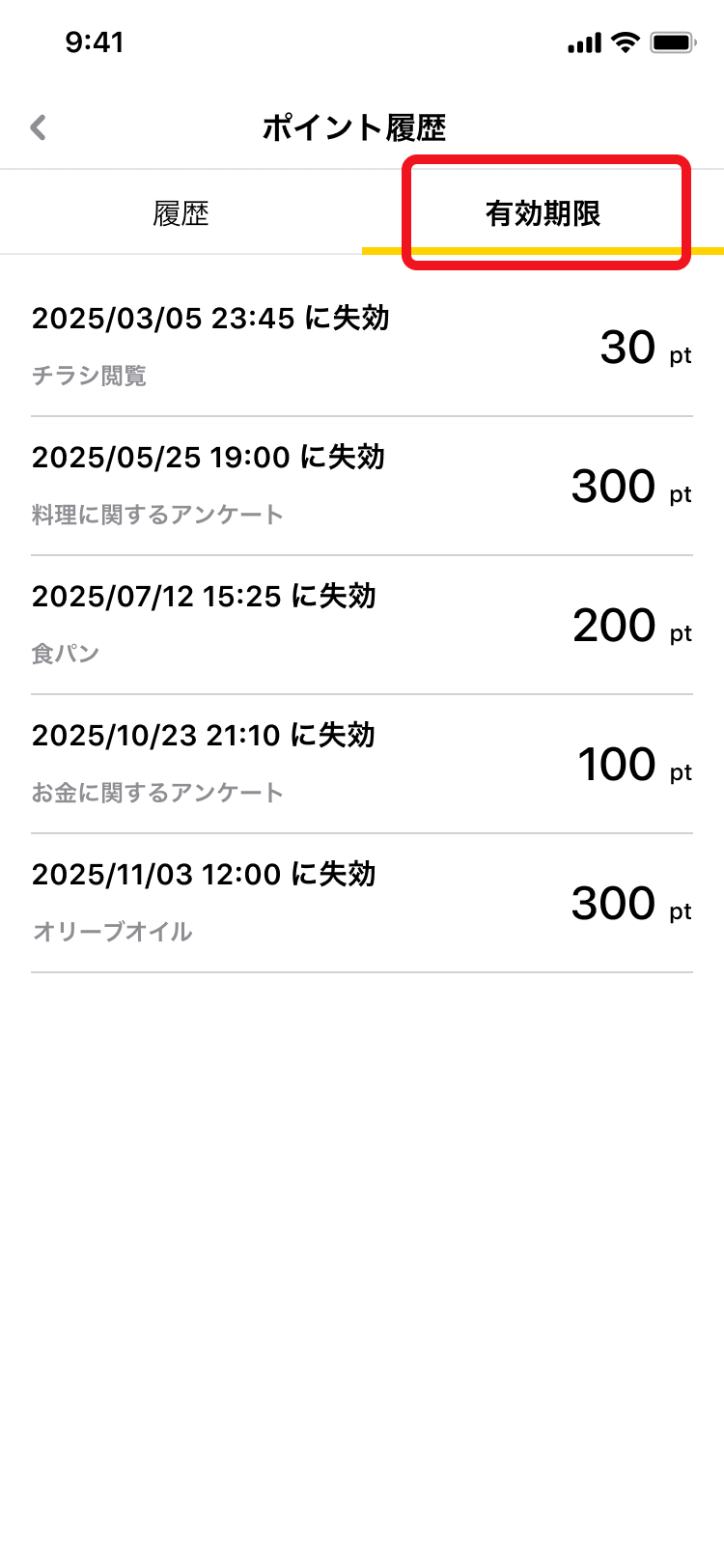 ※ 直近の失効予定のデリッシュキッチンポイントについては画面上部に記載されます